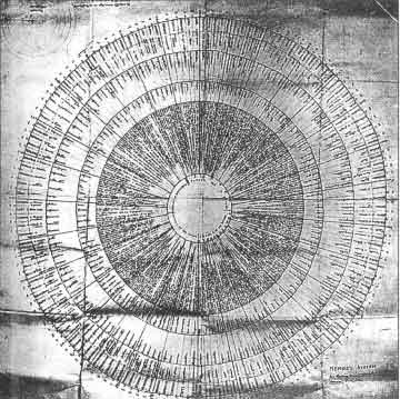 источник, на который опирался Бруно, - это Своему успеху в отыскании пути объединения классического искусства памяти с луллизом Бруно обязан, таким образом, крайней "оккультизации" как классического искусства, так и луллизма. Образы классического искусства он располагает на комбинаторных кругах Луллия, но образы - магические, а круги - колдовские. В том мире, в котором они впервые были опубликованы, "Тени" должны были быть приведены в соответствие с определенными, хорошо известными образцами. Однако из этого не следует, что книга не могла вызвать никакого удивления. Напротив, насколько читатель того времени мог распознать направленность бруновских работ, настолько он увлекался безудержностью отказа от всяких предостережений и ограничений. Бруно ничто не может остановить, он выполняет любую процедуру, какой бы опасной или запретной она ни была, ради достижения того строя души, через общение с космическими энергиями, о котором мечтал хранящий приличия и благонравие Камилло, и к которому Бруно устремлялся с бесшабашной дерзостью и бесконечно более сложными методами. Что представляет собой тот объект (ил. 11), на который мы сейчас приглашаем взглянуть читателя? Это не древний диск и не папирус, отрытый в песках Египта. На этом плане представлена моя попытка раскрыть секрет "Теней". На рисунке - концентрические круги, разбитые на тридцать основных сегментов, каждый из которых также делится на пять подотделов, всего 150 делений. Во всех делениях что-то написано, и, я боюсь, эти надписи на рисунке в книге окажутся неразборчивы. Однако это не делает рисунок менее понятным ни в целом, ни в деталях. План выражает общий проект системы и единую ее идею, позволяющую преодолеть отталкивающую запутанность "Теней". Как был получен этот план и почему его не существовало раньше? Это очень просто. Никто до сих пор не замечал, что в каждом из перечней образов, приводимом в "Тенях", содержится по 150 образов, разбитых на группы по тридцать, так, что их можно расположить на концентрических кругах, которые уже несколько раз появлялись на наших иллюстрациях (рис. 8). На круги, чтобы они вращались подобно кругам Луллия, производя различные комбинации, нанесены все буквы латинского, а также несколько греческих и еврейских, всего получается тридцать букв. Перечни образов, приводимые в книге, разбиты на тридцать разделов, отмеченных этими буквами, каждый раздел имеет пять подразделов, которые помечаются пятью чередующимися гласными. Перечни образов (в каждом перечне - по 150 образов), следовательно, составлены так, что любой из образов можно разместить на концентрических вращающихся кругах. Это и выполнено на моем плане, где перечни образов вписаны в подвижные круги, поделенные на тридцать сегментов, в каждом из которых по пять подразделов. В итоге вышло нечто, напоминающее египетский рисунок, наделенный, несомненно, высоким магическим смыслом, поскольку образы центрального круга - это образы зодиакальных деканов, планет, обителей Луны и домов гороскопа. Описания этих образов перенесены из текста Бруно в центральный круг плана. Он является носителем астральной энергии, приводящей в движение всю систему. Я воспроизвожу здесь (из издания "Теней" 1886 г.) первые две страницы бруновских перечней астральных образов, которые должны располагаться в центральном круге систе